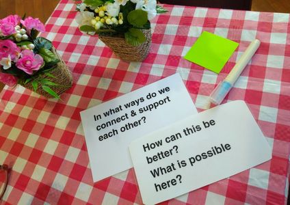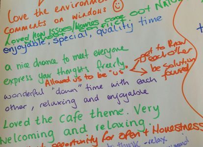 After the team had explored these key questions (and a delicious shared meal) we moved in to an Open Space Technology session. Here deeper issues resulting from the Cafe dialogue were explored...